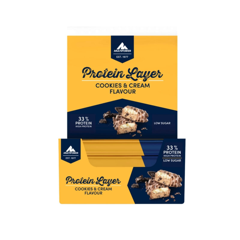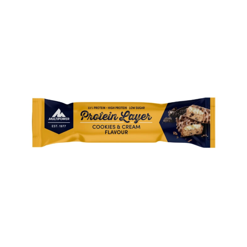 Multipower Protein Layer 50 Gr, yoğun yaşam temposunda protein alımını artırmak isteyenler için pratik bir tercihtir. Yüzde 32’lük yüksek protein oranı ile öne çıkan bu özel protein bar, düşük şeker içeriği ile öne çıkar. Protein bar içerisinde 16 g protein ve 2 g lif yer alır. Sadece 194 kalori içeren Multipower Protein Layer, kurabiye aromasıyla zenginleştirilmiş özel formülüyle sadece pratik değil, aynı zamanda lezzetli bir seçenek sunar.