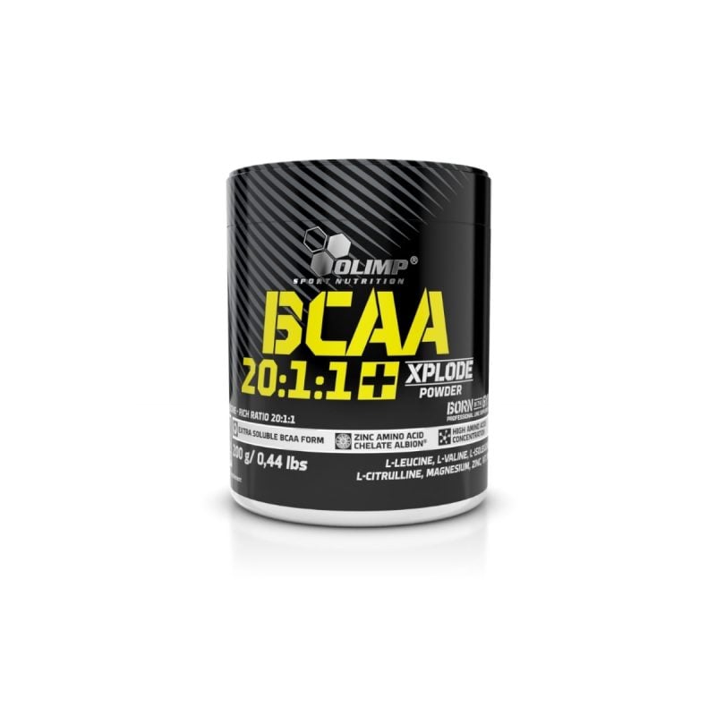 20:1:1 oranında lösin, valin ve izolösin dallı zincirli amino asitlerini içeren bir spor gıdasıdır. Olimp laboratuarlarında geliştirilen benzersiz bir formüle sahip olan Olimp BCAA 20:1:1 + Xplode, yüksek oranda lösin amino asidi içermektedir. Olimp BCAA 20:1:1 + Xplode Powder, formülüne B6 vitamini ve Magnezyum, Çinko mineralleri ilave edilmiştir.